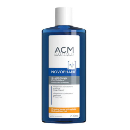 Novophane Shampooing Énergisant des laboratoires ACM est un soin capillaire spécialement formulé pour redonner force et vitalité aux cheveux ternes, fins et fragilisés. Il s’utilise idéalement en complément des traitements anti-chute pour renforcer la fibre capillaire et améliorer la qualité des cheveux.
