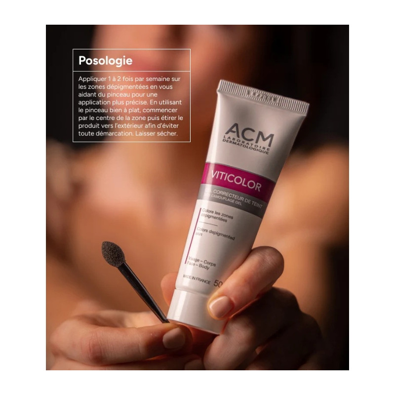 Viticolor offre une solution efficace et discrète pour améliorer visiblement l’apparence des zones dépigmentées, tout en respectant la sensibilité des peaux concernées.