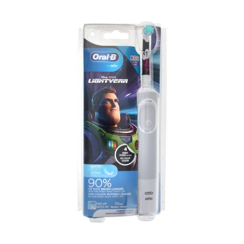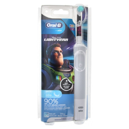 La brosse à dents électrique Oral-B Kids à l’effigie de Disney Pixar Light year, adaptée à partir de 3 ans, offre le nettoyage doux et efficace d’une brosse à dents Oral-B recommandée par les dentistes.