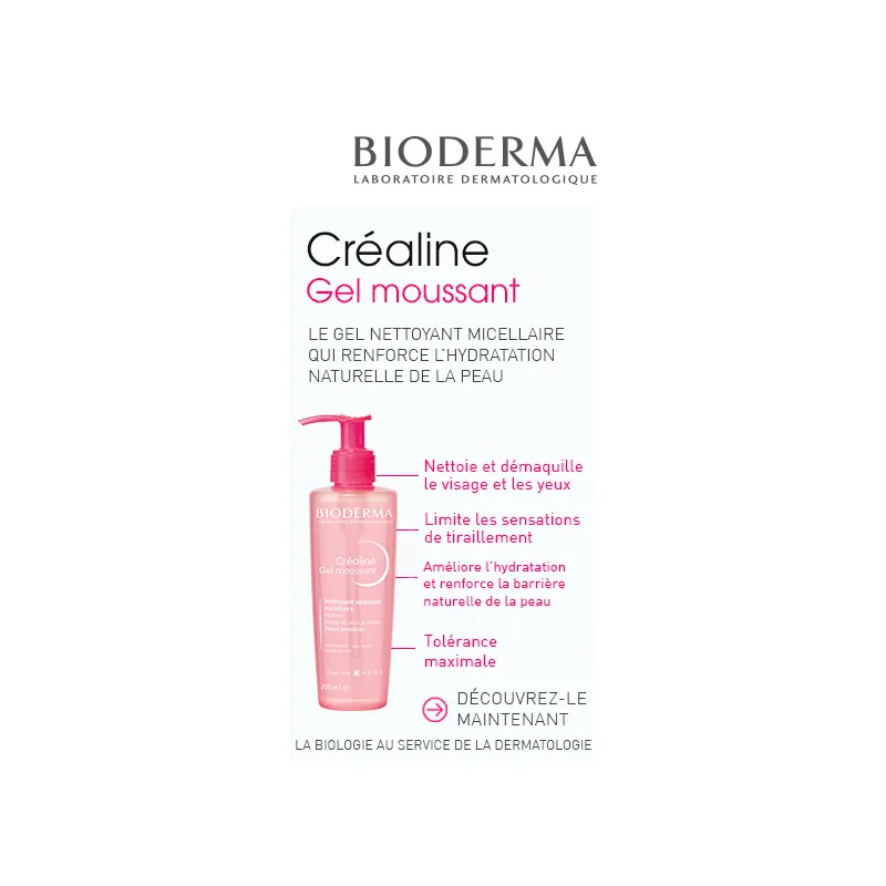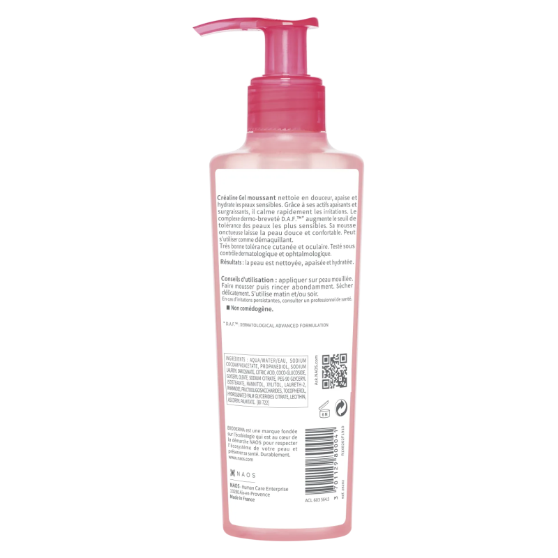 Créaline Gel Moussant nettoie en douceur le visage et les yeux tout en respectant l’équilibre des peaux sensibles. Il apaise, hydrate* et offre une tolérance optimale au quotidien.