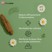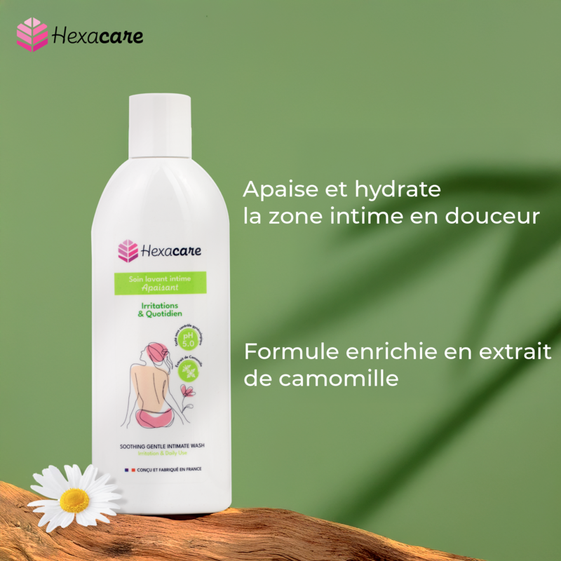 Apportez confort et sérénité à votre hygiène intime quotidienne grâce au Gel Intime Apaisant Hexacare, formulé pour calmer, hydrater et protéger en douceur les muqueuses sensibles. Sa formule est enrichie en extrait de camomille, connu pour ses propriétés apaisantes, ainsi qu’en acide lactique, respectueux du pH physiologique, et Syricalm©, un complexe végétal breveté qui renforce la tolérance cutanée face aux agressions externes.