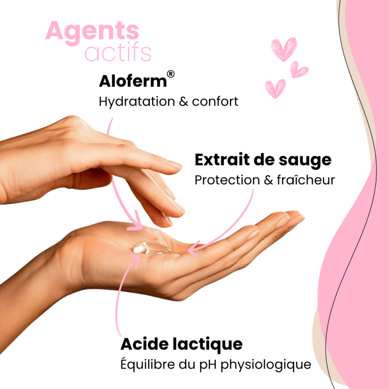 Enrichi en extrait de sauge, reconnu pour ses vertus purifiantes et apaisantes, il contient également de l’acide lactique pour maintenir le pH physiologique et renforcer l’équilibre naturel de la flore intime. Grâce à Aloferm©, un complexe exclusif à base d'aloe vera fermenté, ce gel procure une hydratation profonde et un soulagement durable, tout en laissant une sensation de fraîcheur agréable tout au long de la journée.