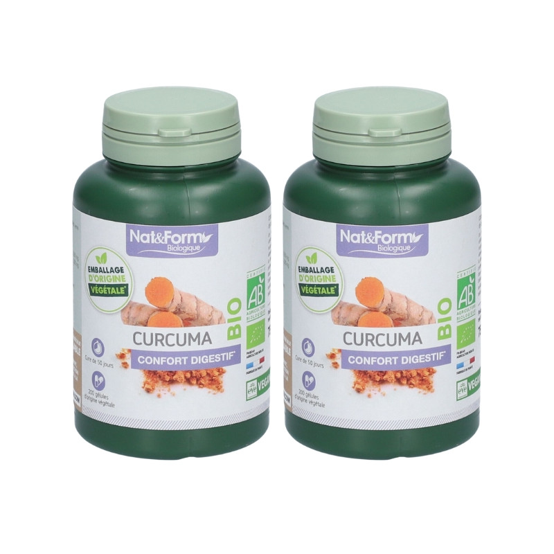 Ingrédients pour 6 gélules : Poudre de rhizomes de curcuma 1800 mg, Gélatine 450 mg