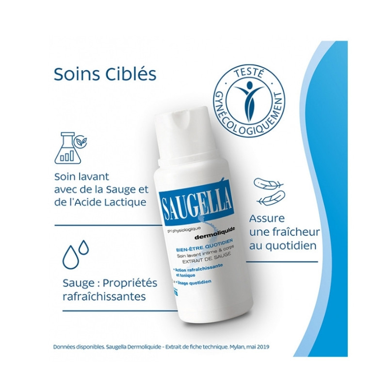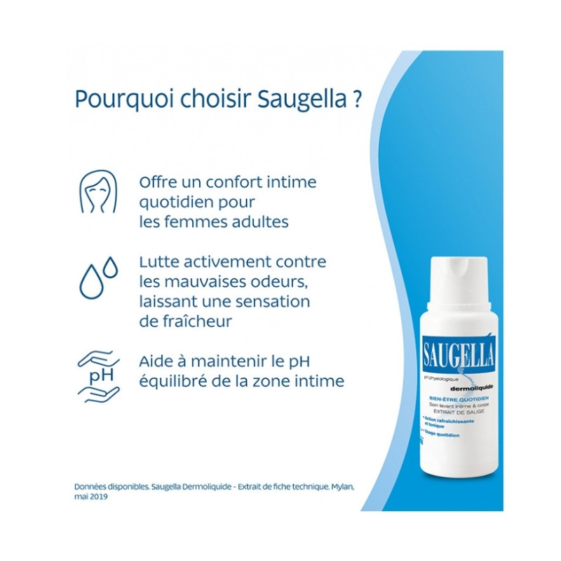 Saugella Dermoliquide préserve l'équilibre intime au quotidien. Il apporte une agréable sensation de fraîcheur et de confort.