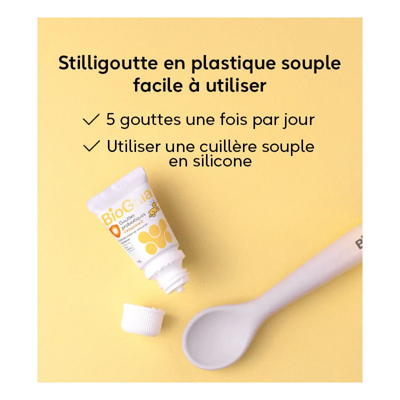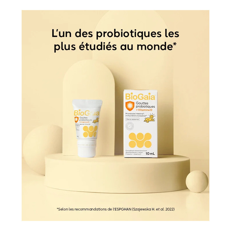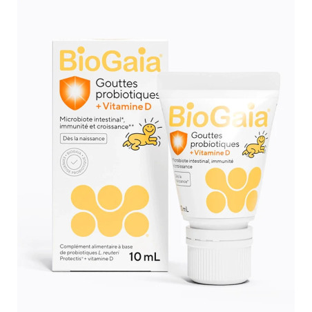 BioGaia® Gouttes est un complément alimentaire spécialement formulé pour les nouveau-nés et nourrissons. Il associe le Limosilactobacillus reuteri Protectis® – une souche probiotique brevetée* – à la vitamine D3, pour soutenir l’équilibre du microbiote intestinal et renforcer les défenses naturelles des tout-petits.