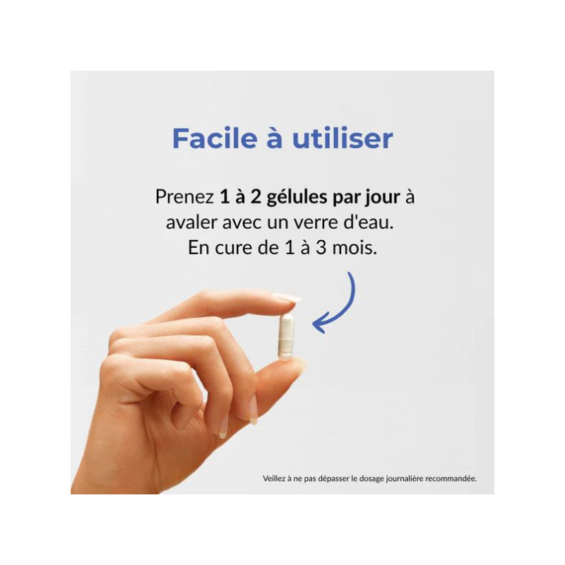 1 gélule par jour, de préférence le matin à jeun, avec un verre d’eau.
